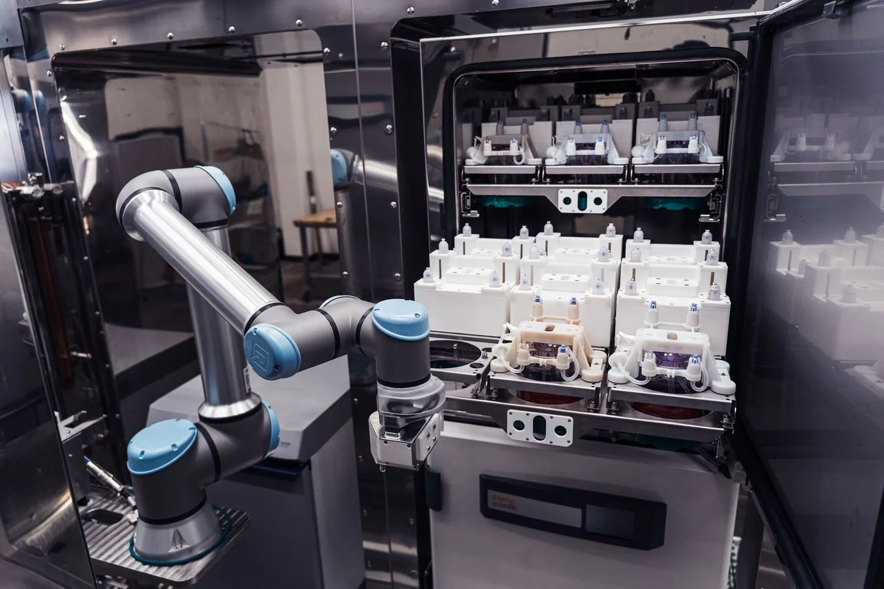 Multiply Labs is developing robotics-first biomanufacturing systems designed to improve consistency, traceability, and throughput. The company’s platform uses four robotic arms operating in parallel and is targeting up to 100 times more patient doses per square foot of cleanroom space compared to traditional manual methods.